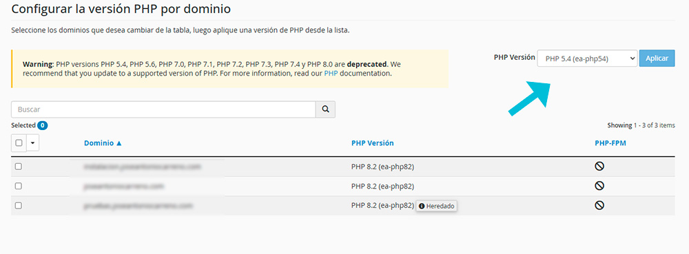 3. Cambia la versión de PHP en cPanel